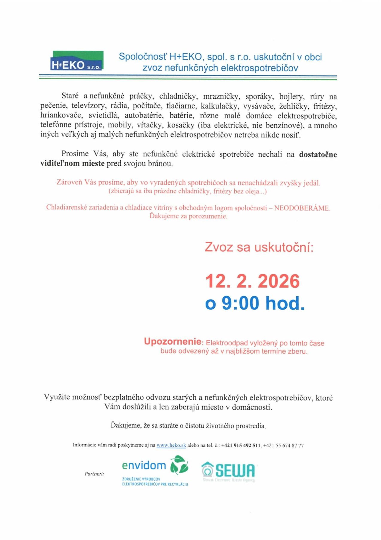 Oznámenie – Zber elektroodpadu 12.02.2026